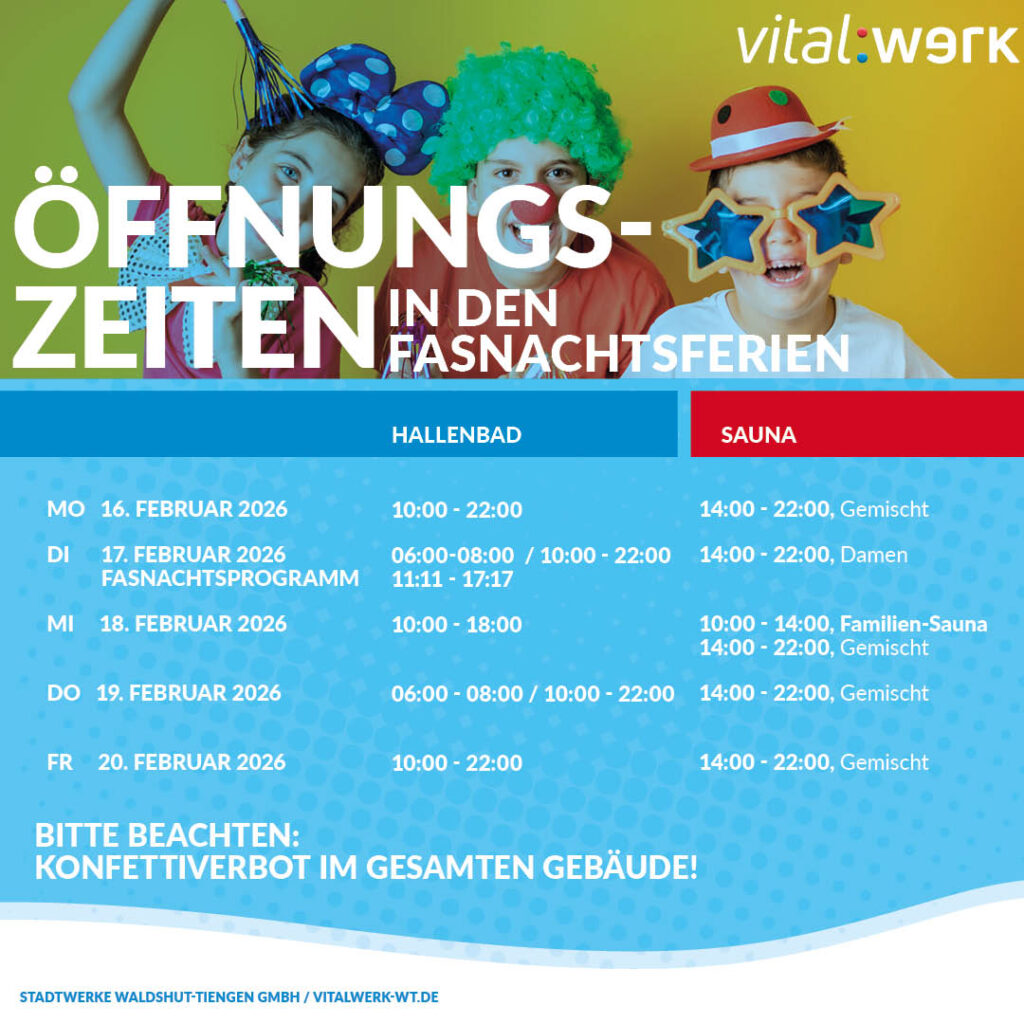 Aufgrund einer technischen Störung muss das Hallenbad heute, 30.10.2024, leider geschlossen bleiben. Die Sauna ist regulär geöffnet. Wir danken für Ihr Verständnis und geben hier bekannt, wenn das Hallenbad wieder geöffnet werden kann.